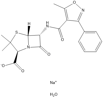 生產(chǎn)方法:6-氨基青霉烷酸與苯甲異噁唑酰氯縮合、成鹽而得。