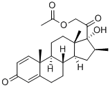 英文同義詞:16-meprednisone acetate;21-Acetyloxy-17-hydroxy-16β-methylpregna-1,4-diene-3,11,20-trione;[2-[(8S,9S,10R,13S,14S,16S,17R)-17-hydroxy-10,13,16-trimethyl-3,11-dioxo-6,7,8,9,12,14,15,16-octahydrocyclopenta[a]phenanthren-17-yl]-2-oxoethyl] acetate;[2-[(8S,9S,10R,13S,14S,16S,17R)-17-hydroxy-10,13,16-trimethyl-3,11-dioxo-6,7,8,9,12,14,15,16-octahydrocyclopenta[a]phenanthren-17-yl]-2-oxo-ethyl] ethanoate;acetic acid [2-[(8S,9S,10R,13S,14S,16S,17R)-17-hydroxy-3,11-diketo-10,13,16-trimethyl-6,7,8,9,12,14,15,16-octahydrocyclopenta[a]phenanthren-17-yl]-2-keto-ethyl] ester;17,21-dihydroxy-16beta-methylpregna-1,4-diene-3,11,20-trione 21-acetate;(16β)-21-(Acetyloxy)-17-hydroxy-16-Methyl-pregna-1,4-diene-3,11,20-trione;17,21-Dihydroxy-16β-Methyl-pregna-1,4-diene-3,11,20-trione 21-Acetate