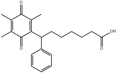 英文同義詞:50MG/200MG/1G;benzeneheptanoic acid, -(2,4,5-trimethyl-3,6-dioxo-1,4-cyclohexadien-1-yl)-;(+-)-7-(3,5,6-trimethyl-1,4-benzoquinon-2-yl)-7-phenylheptanoicacid;aa-2414;beta-(2,4,5-trimethyl-3,6-dioxo-1,4-cyclohexadien-1-yl)-bezeneheptanoicaci;5-(2,4,5-trimethyl-3,6,-dioxo-1,4-cyclohexadien-1-yl)benzeneheptanoic acid;7-(3,5,6-trimethy1-1,4-benzoquinon-2-y1)-7-phenylheptanoic acid;7-phenyl-7-(2,4,5-trimethyl-3,6-dioxo-1-cyclohexa-1,4-dienyl)heptanoic acid