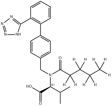 英文同義詞:L-Valine, N-(1-oxopentyl-d9)-N-[[2'-(1H-tetrazol-5-yl)[1,1'-biphenyl]-4-yl]Methyl]-;ACWBQPMHZXGDFX-KDDXQTGLSA-N;(2S)-3-methyl-2-[2,2,3,3,4,4,5,5,5-nonadeuteriopentanoyl-[[4-[2-(2H-tetrazol-5-yl)phenyl]phenyl]methyl]amino]butanoic acid;rac-Valsartan D9;[2H9]-Valsartan (mixture);[2H9]-Valsartan;VALSARTAN-D9 (D7-D9 MIXTURE);Valsartan D9Q: What is Valsartan D9 Q: What is the CAS Number of Valsartan D9 Q: What is the storage condition of Valsartan D9 Q: What are the applications of Valsartan D9
