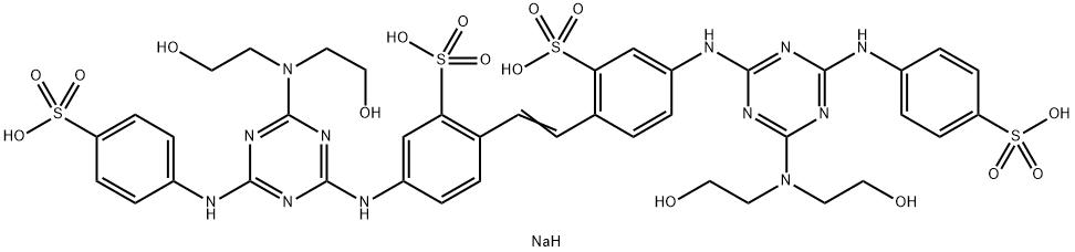 英文同義詞:2,2’-(1,2-ethenediyl)bis(5-((4-(bis(2-hydroxyethyl)amino)-6-((4-sulfophenyl)amino)-1,3,5-triazin-2-yl)amino)-benzenesulfonicacitetrasodiumsalt;2,2’-Stilbenedisulfonicacid,4,4’-bis[[4-bis(2-hydroxyethyl)amino]-6-(p-sulfoanilino)-s-triazin-2-yl]amino]-,tetrasodiumsalt;3,5-triazin-2-yl)amino)--6-((4-sulfophenyl)amino)-tetrasodiumsalt;3,5-triazin-2-yl]amino]--6-[(4-sulfophenyl)amino]-tetrasodiumsalt;Benzenesulfonicacid,2,2’-(1,2-ethenediyl)bis[5-[[4-[bis(2-hydroxyethyl)amino]-6-[(4-sulfophenyl)amino]-1,3,5-triazin-2-yl]amino]-,tetrasodiumsalt;tetrasodium 4,4'-bis[[4-[bis(2-hydroxyethyl)amino]-6-(4-sulphonatoanilino)-1,3,5-triazin-2-yl]amino]stilbene-2,2'-disulphonate];PHORWHITE BBU;Benzenesulfonic acid, 2,2-(1,2-ethenediyl)bis5-4-bis(2-hydroxyethyl)amino-6-(4-sulfophenyl)amino-1,3,5-triazin-2-ylamino-, tetrasodium salt